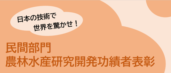 農林水産省は、公益社団法人農林水産・食品産業技術振興協会と共催で、農林水産業及びその他関連産業に関する研究開発のうち民間が主体となって行っているものについて、その一層の発展及びそれに従事する者の一層の意欲向上に資するため、優れた功績を挙げた者に対する表彰を平成12年度より実施しています。」