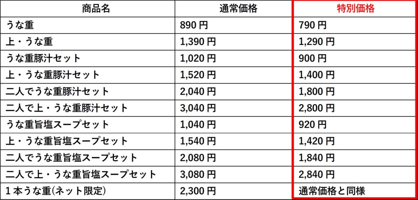 - 早めの予約がお得! 店頭・うな重専用ネット注文サイトで割引!