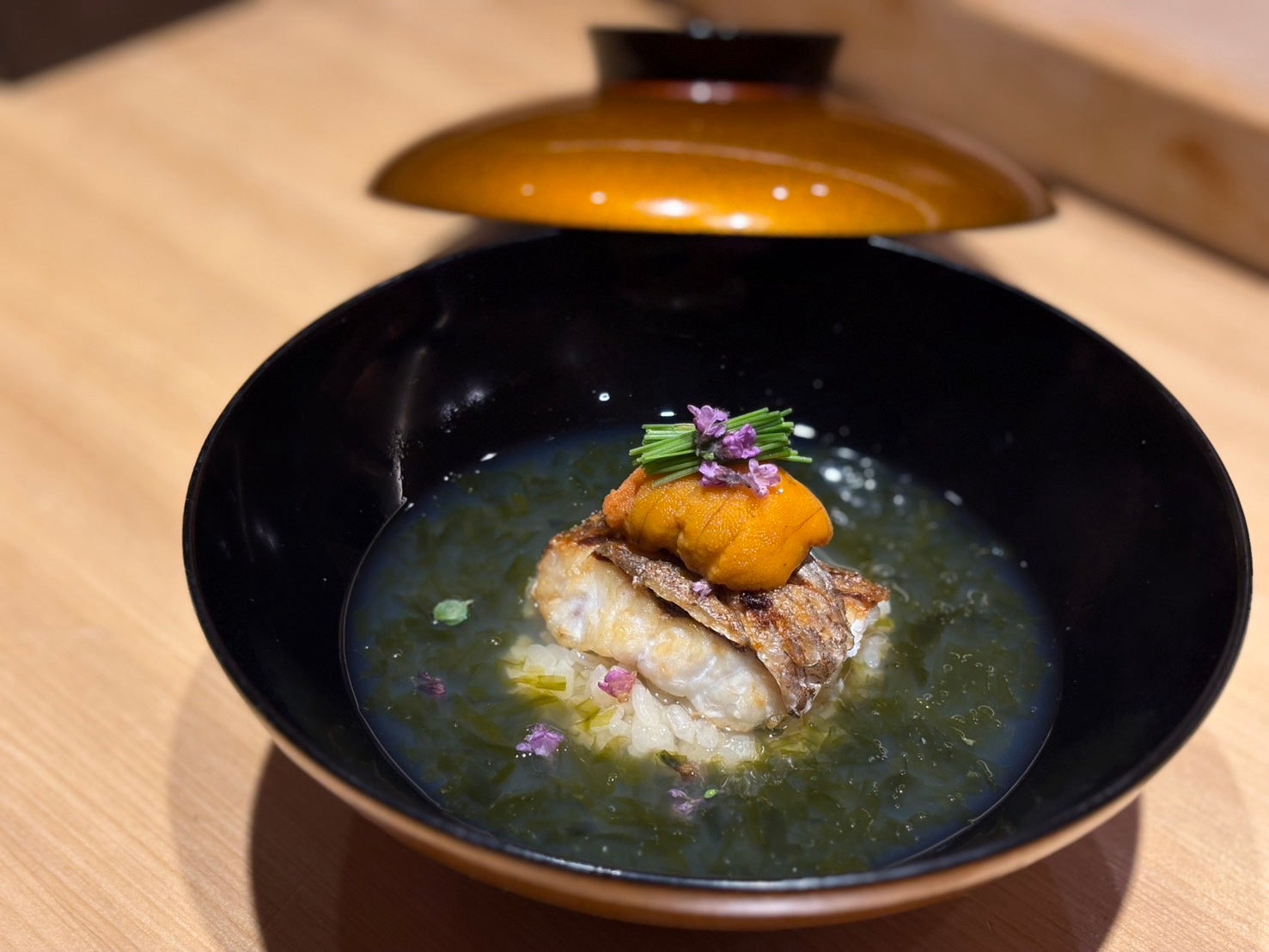 皮目をパリッと焼いたのどぐろ、そして生の馬糞雲丹を贅沢にトッピング。