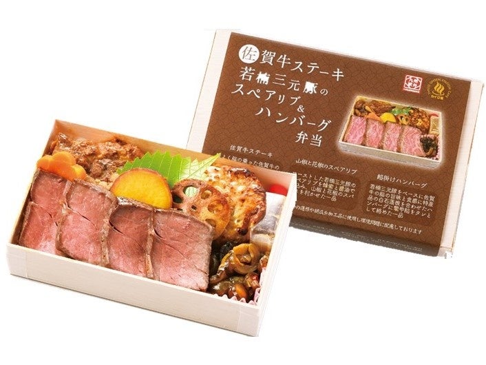 「佐賀牛ステーキと若楠(わかくす)三元豚のスペアリブとハンバーグ弁当」1,998円 各日500食販売予定 初登場