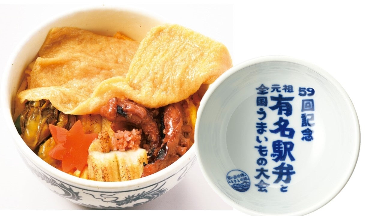 1890年創業の老舗調製元「浜吉」が広島県福山市にある福山城の築城400年を記念して2022年に販売開始した駅弁「うずみいなり」が特製どんぶり企画委に登場。具をご飯の下に埋(うず)めて食べたことが始まりといわれる福山の郷土料理「うずみ」をヒントに作られました。一面に覆われた甘い香りの油揚げの下に、浜吉自慢の煮ダコやカキ、焼穴子、玉子焼きなどが酢飯に盛られています。※現地販売は通常容器です。※特製どんぶりで完売後は、通常容器で販売します。