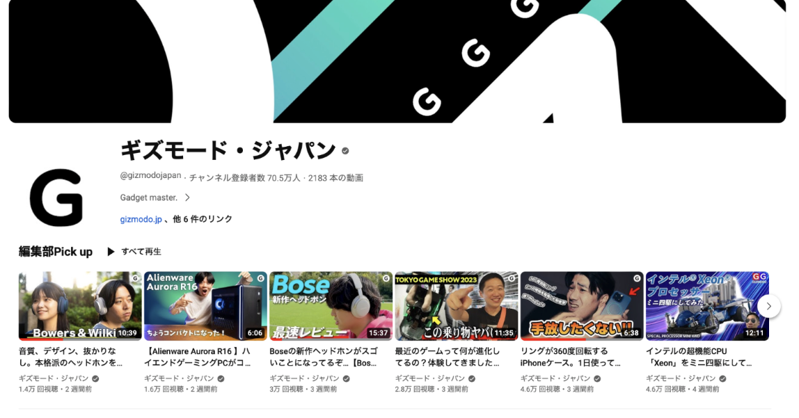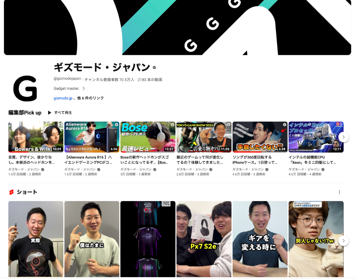 ギズモード・ジャパンのYouTubeチャンネル登録者数が70万人を突破。テックメディアとしての枠を越え動画メディアとしてもトップクラスへ。