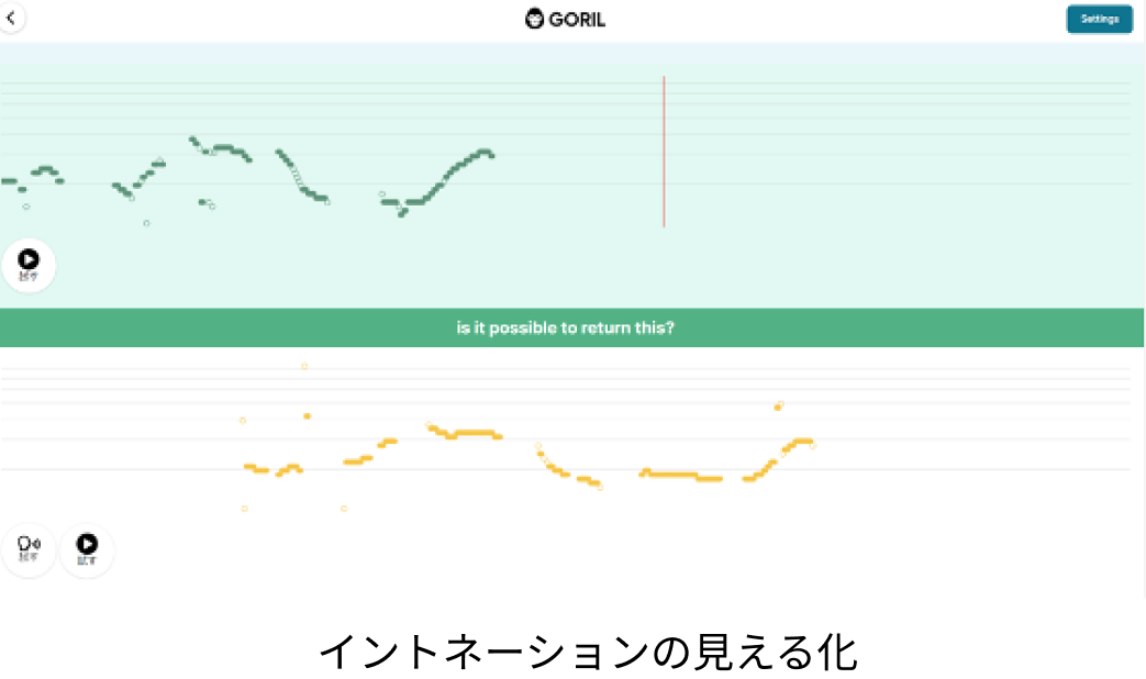 「GORIL」は、語+ドリルから名付けられた、どんな人でも、楽しく使える全く新しいタイプの発音学習ツールです。音声を科学的に分析し、可視化して、再現可能な一種の運動とすることで、楽しく発音を身に着けることができるツールです。