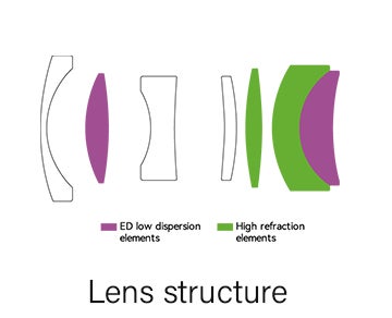 シャープ&鮮やかな画像:レンズには、EDレンズ2枚と屈折レンズ2枚を含む6群7枚に配置されており、最小限の歪みでシャープで鮮やかな画像を生み出すように作られています。