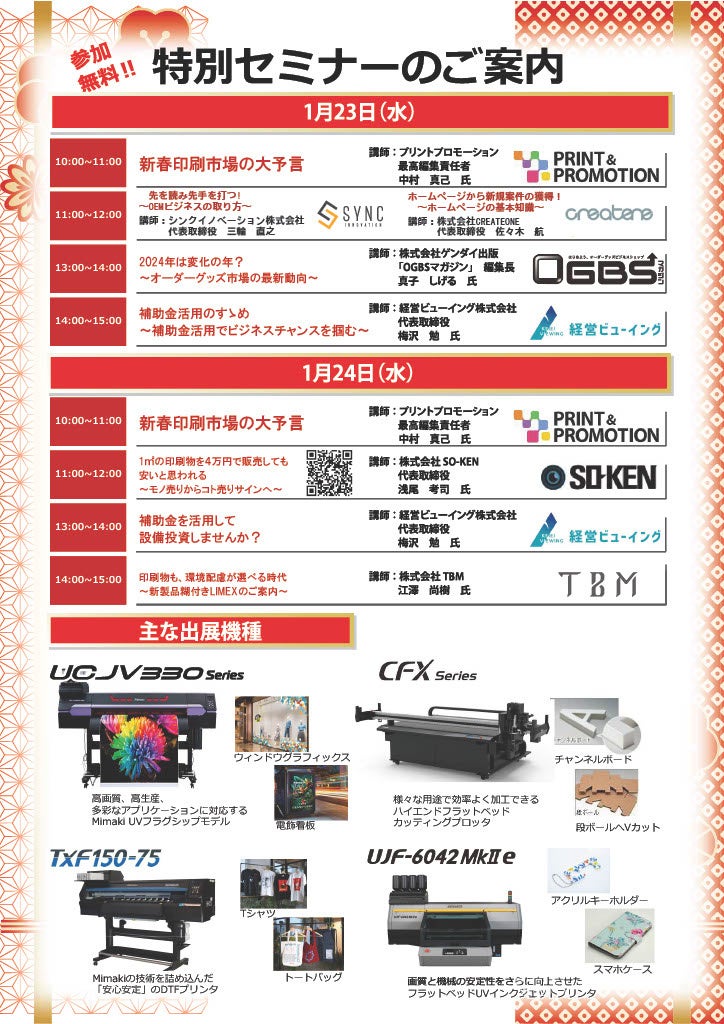 ㈱ミマキエンジニアリング大阪支店の【新春展示会2024】にてシンクイノベーション㈱の無料のグッズビジネスセミナーが開催されます!