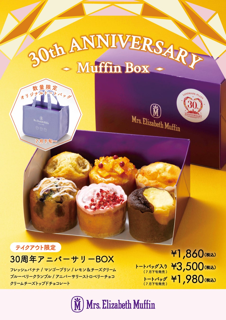 ミセスエリザベスマフィン ランドマークプラザ店「30周年アニバーサリーBOX 第2弾」 登場!販売期間:7月1日(土)~8月31日(木)