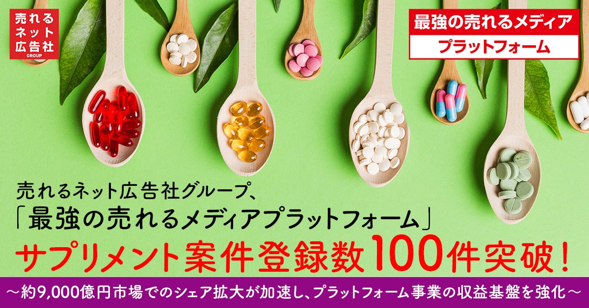 売れるネット広告社グループ、「最強の売れるメディアプラットフォーム」のサプリメント領域登録案件数が100件を突破!~約9,000億円市場でのシェア拡大が加速し、プラットフォーム事業の収益基盤を強化~