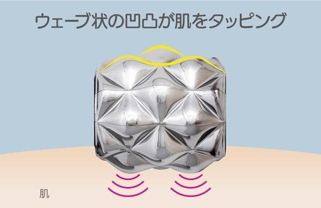 「Cellsh ウェーブフェイシャルローラー」のヘッドは、くり返すウェーブがタッピングポイントになり回転しながらリズミカルに肌を刺激します。それは、エステティシャンが指先で、やさしく肌をタッピングするような心地よさです。