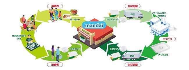 株式会社エフピコ(代表取締役会長:佐藤 守正、以下「エフピコ」)と株式会社万代(代表取締役社長:阿部 秀行、以下「万代」)は、関西エリア170店舗(2026年1月末時点)を対象に、店頭で回収された使用済み食品トレーを新たな食品トレーに生まれ変わらせ、再び店頭で「エコ製品」※1を積極的に使用する「ストアtoストア」の水平リサイクル※2の取り組みを強化いたします。