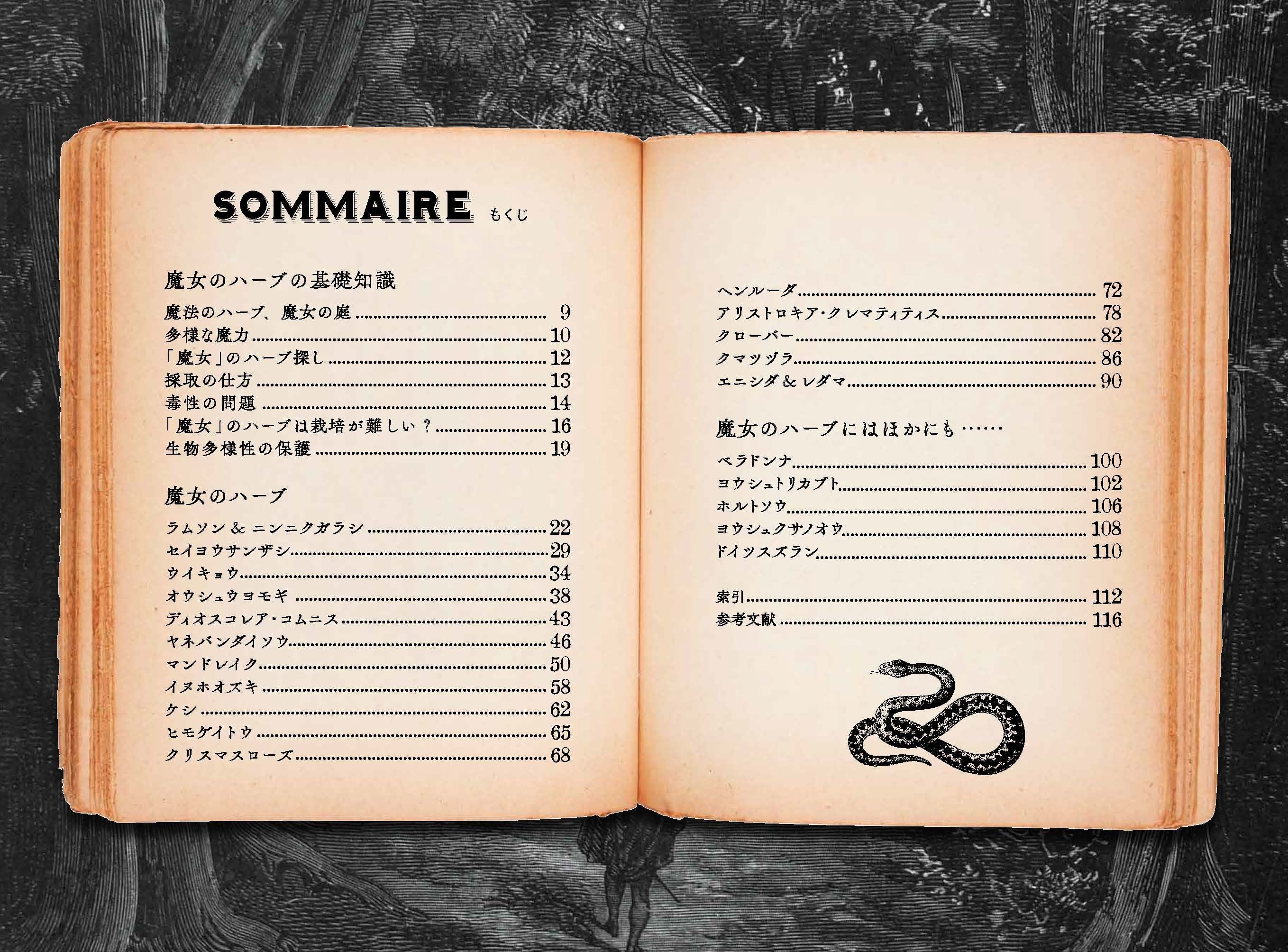 本書では、ときに毒として、ときに体を癒す魔法の薬として人々に愛された秘薬のレシピを紹介します。ニンニクやクリスマス・ローズなどの、身近な植物の薬効や言い伝えなど、リアルで実用的な禁断のハーブ読本です。