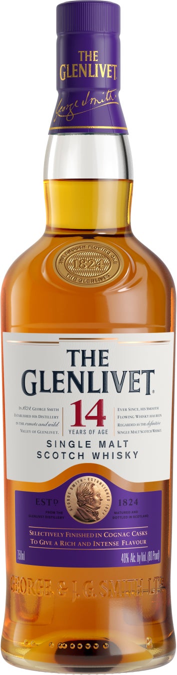 バーボン樽、シェリー樽で14年間熟成させたブレンドの一部を、コニャックを熟成した高品質な樽で6ヶ月間以上寝かせた商品。ザ・グレンリベット本来のスムースでフルーティーな味わいとコニャックカスクがもたらす味わいがバランスよく調和しています。