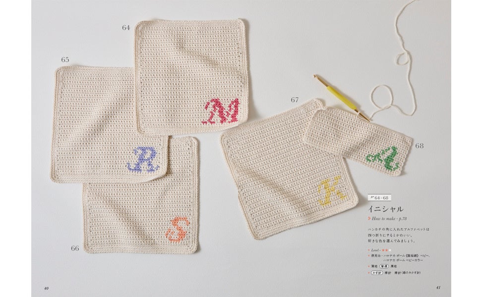 編むのがちょっと苦手でも、時間がなくても、小さいからすぐに完成するのもいいところです。本書では、シンプルで簡単、基本の編み方の練習にもなる作品から、インシャルや模様を編み込んだり、形を変えたものまで用途や好みに合わせて選べるように、色もデザインも豊富に考えました。