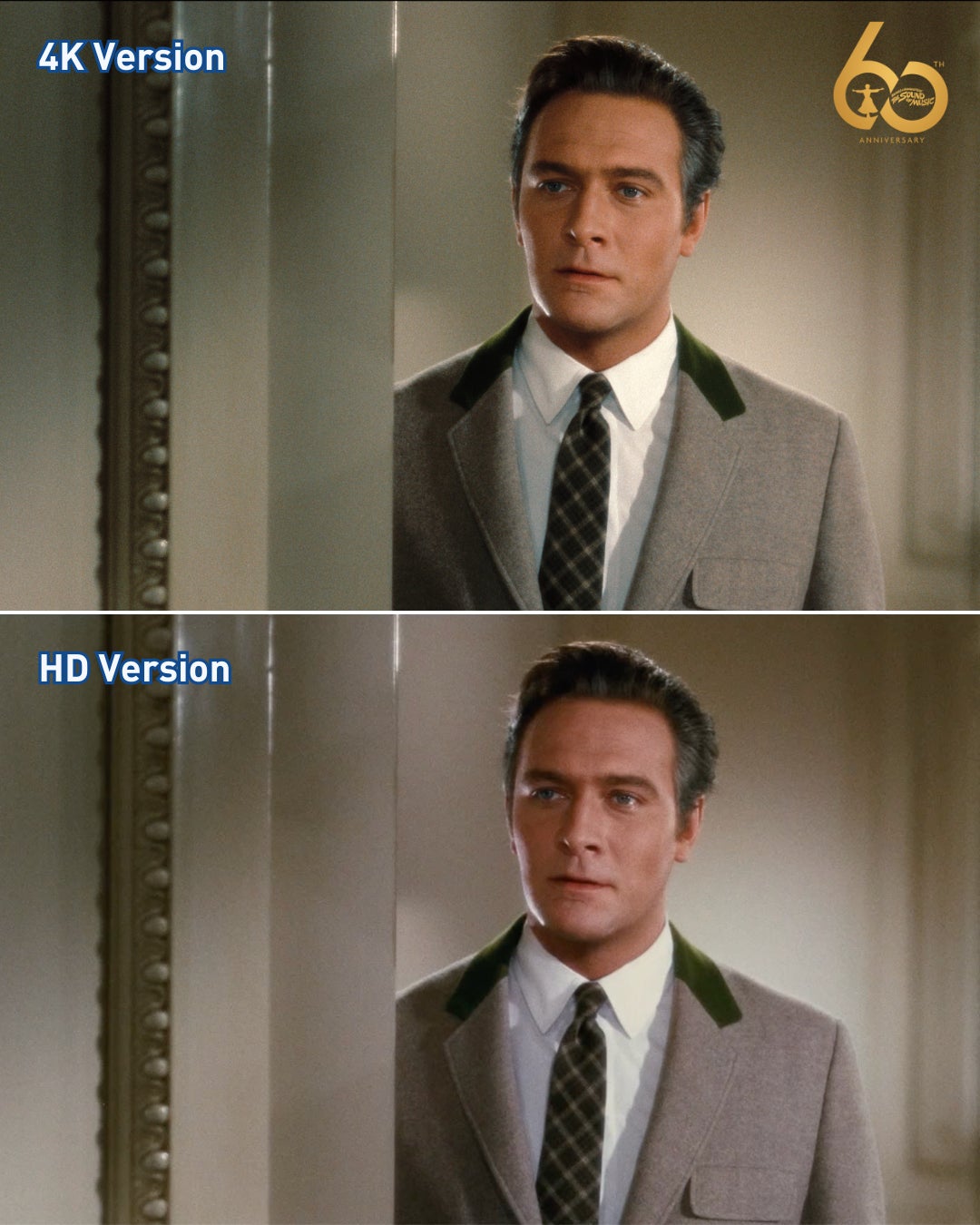 もともとのオリジナル素材と、初の4Kデジタルリマスターの素材を比較できる画像が公開されました。ただ明るくしただけでない、本来意図されていた映像へのリマスターを心がけたという修復チームの言葉通り、4Kリマスターの画像では深みがある鮮明な味わいを感じられます。ぜひ大スクリーンで味わっていただきたい映像です。