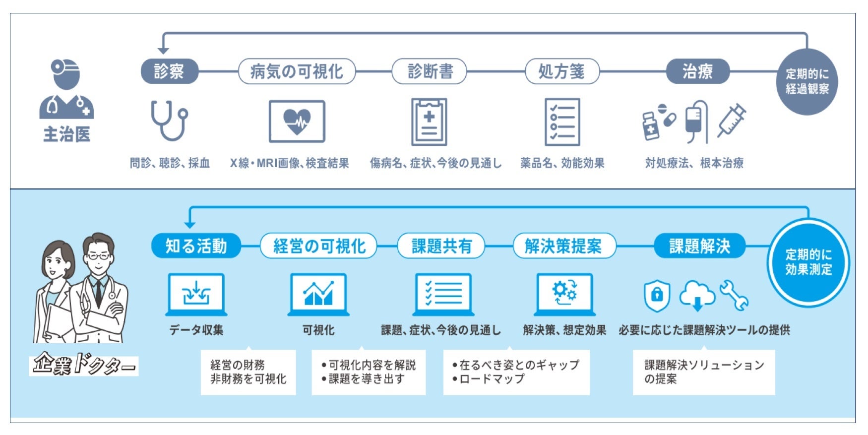 「コロナ禍を経て、中小企業の資金繰りは回復傾向にあると言われていますが、決して楽観視できる状況ではありません。むしろ、人材不足、情報不足、そして資金不足という三重苦に直面している企業が多いのが実情です。DX(デジタルトランスフォーメーション)への取り組みも増加傾向にありますが、多くの企業が思うように成果を上げられていないのが現状です。こうした課題を乗り越えるためには、企業ドクターのような存在が必要不可欠です。人が体調不良の際に医者にかかるように、企業も専門家のアドバイスやサポートを受けながら、課題解決に取り組むことが重要になります。」