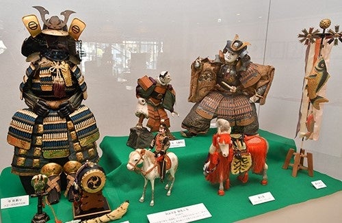 一方、5月5日の「端午の節句」は、古くは菖蒲などの薬草を飾り、穢れを祓う日でしたが、江戸時代に武を尊び男児の成長を祝う年中行事として定着しました。今回は、甲冑飾りのほか大ぶりな豊臣秀吉の武者人形など、約10点を展示しています。