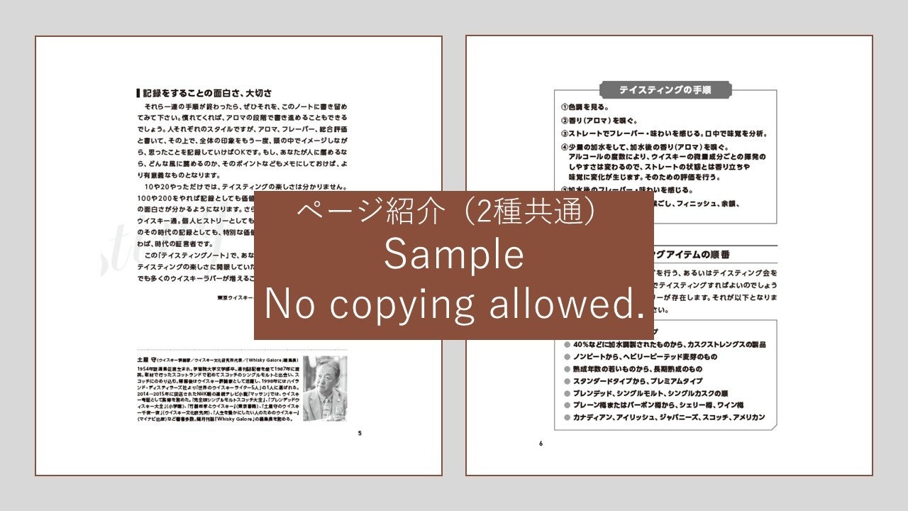 このノートは、テイスティングの面白さや基礎知識、用語などをまとめたノートになっており、ウイスキー以外の蒸留酒にもご活用いただけます。初級者から上級者まで幅広くご利用いただける一冊となっております。