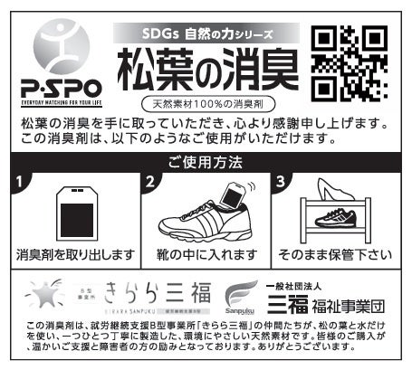 就労継続支援B型事業所 きらら三福(一般社団法人 三福福祉事業団)は、松葉ペレットを使用した消臭剤『松葉の消臭』の販売をスタートしました。
