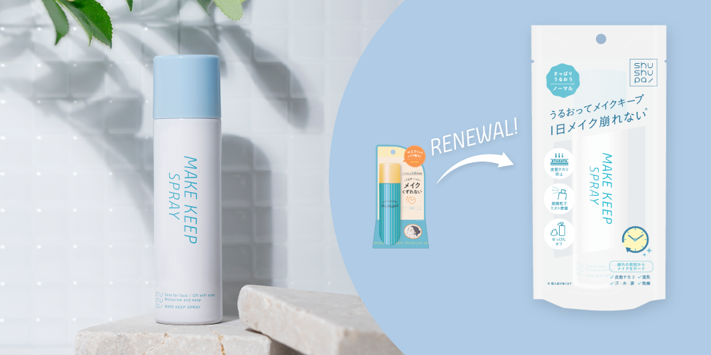 shushupa!ブランド開始当時から人気の“メイクキープスプレー”に、美容保湿成分を新たに5種追加配合し、昨年リニューアルしました。