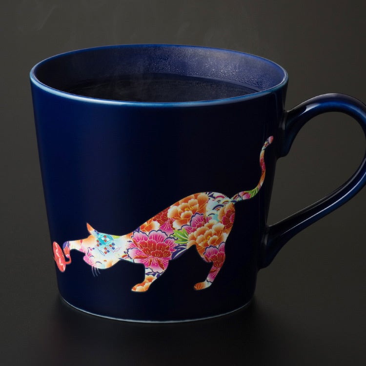 ニャンとびっくり!黒猫が華麗に変身!?温かい飲み物を注ぐと姿が変わる「華猫のマグカップ」。丸みを帯びたハンドルは猫の尻尾をイメージしており、まさに「猫好きにはたまらない」キュートなひと品です。