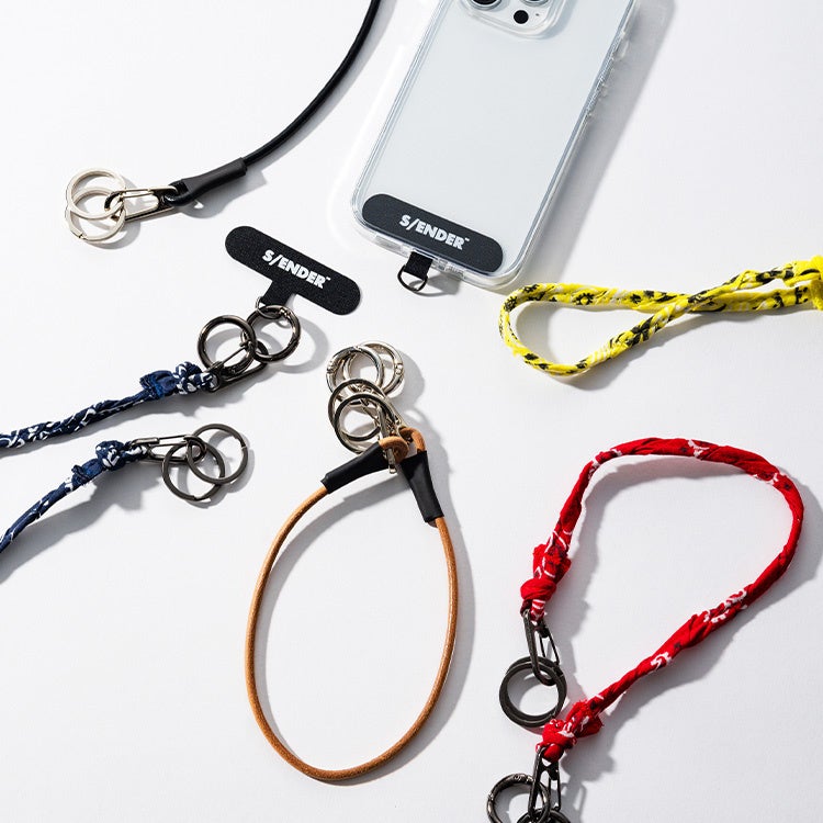 スマホにおしゃれな救世主!落とさない&失くさない実用性の高さとカッコよさを両立させた希少なアイテム。カラフルなバンダナは色で遊ぶお茶目感を、アクセサリーのようなレザーコードはスマートなムードを演出してくれます。