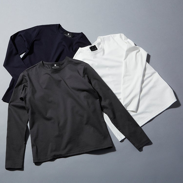 「首・胸・肩・腕」をキレイに魅せる!ラインの美しさと最高品質を追求した、大人のための長袖Tシャツ。なめらかでいてしっかりとした厚手の生地は着心地よく、シンプルな着こなしでもお洒落で上質感が伝わる優れもの。