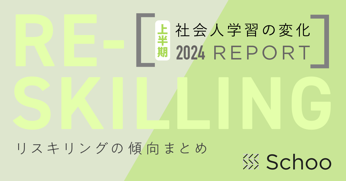 昨年に続き、リスキリングは現代の社会人の注目トピックです。Schooの会員数も約100万人(2023年12月末時点)から約112万人(2024年6月17日時点)へと増えており、社会人学習のニーズの高まりが読み取れます。