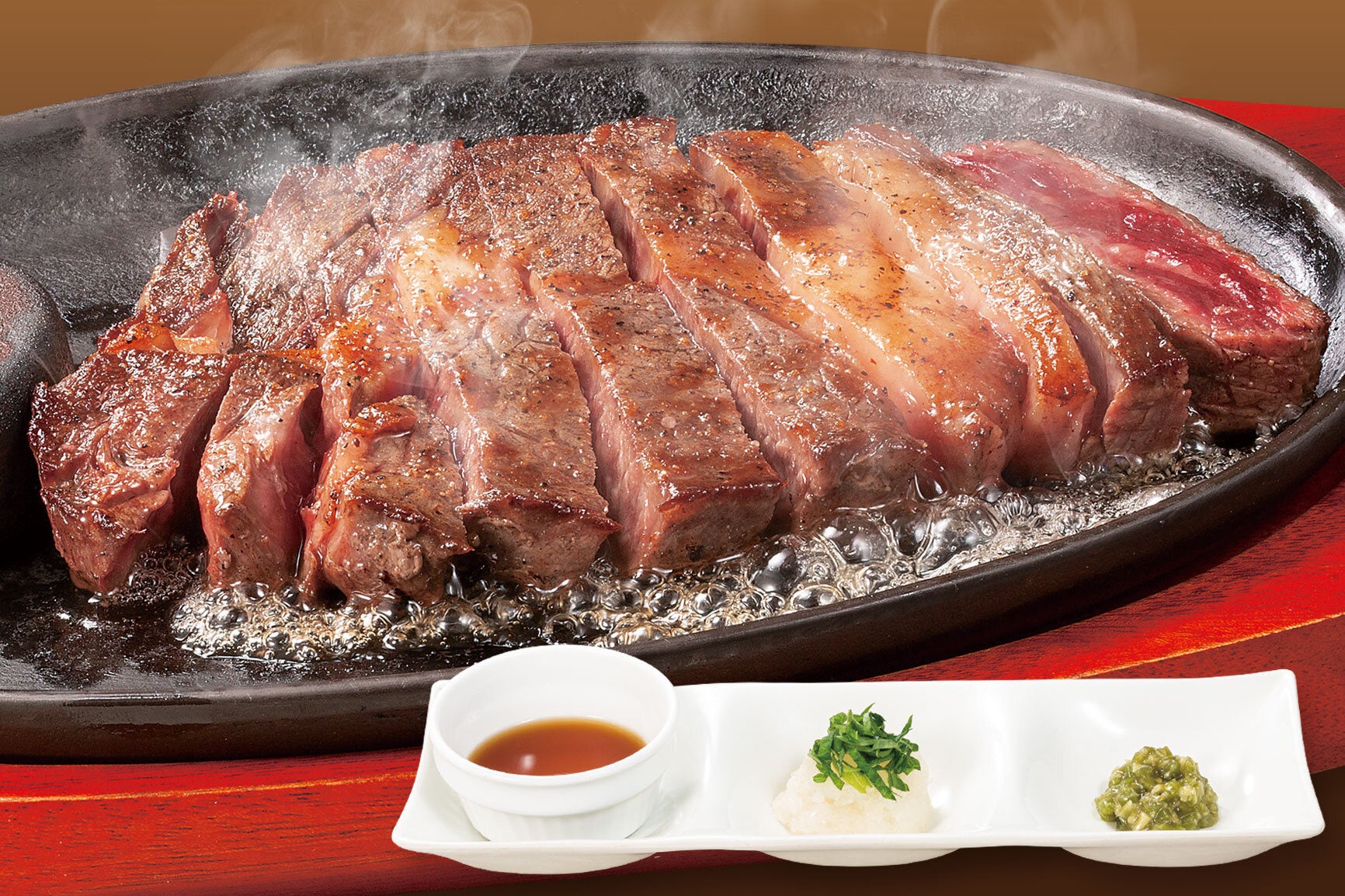 対象商品:激アツステーキ、牛ハラミステーキ、サーロインステーキ、リブロインステーキ、テンダーロインステーキ、カットステーキ、どんステ、切り落としステーキランチ、わくわくテンダーロインステーキ、Jr★リブロインステーキ