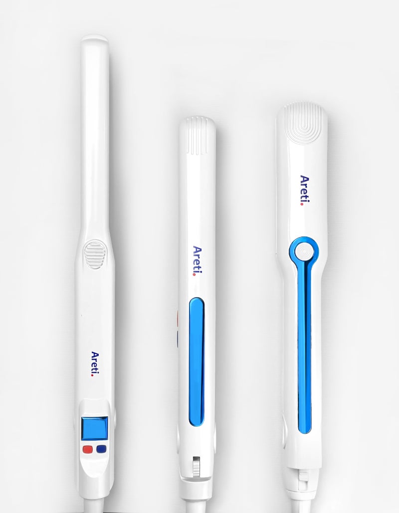 アレティには80℃から5℃ずつ設定できる2WAYヘアアイロンが豊富で、寝る前の使用にも最適。髪の長さに合わせてプレート幅を選べるため、髪型を選ばず愛用いただけます。