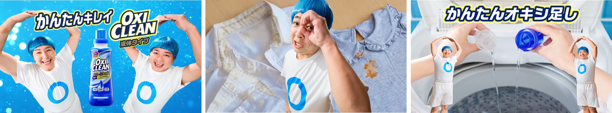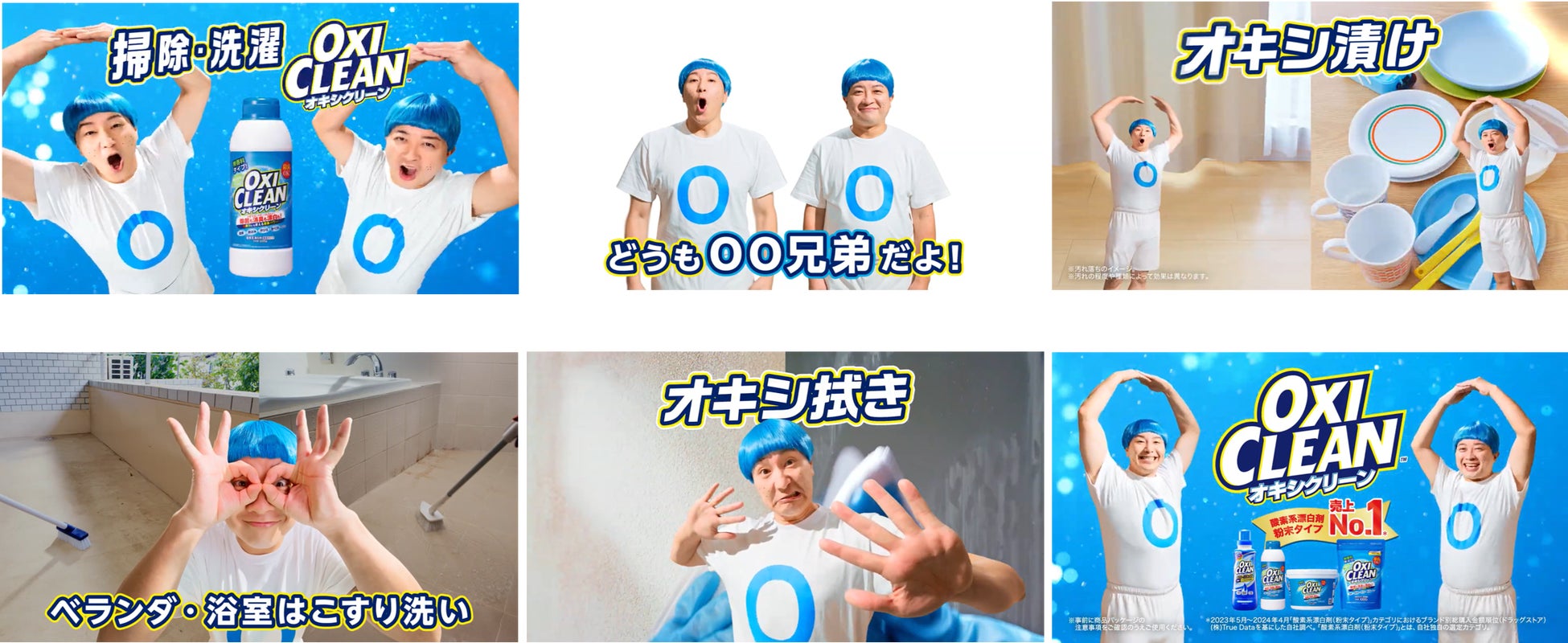 今回のCMでは、年末に放映された「大掃除にはオキシクリーン」篇に引き続き、チョコレートプラネットのお2人が「OO兄弟」となって登場します。「洗濯にパワーリキッド」篇では、液体タイプ「オキシクリーン パワーリキッド」でできる洗濯ワザを「OOポーズ」で披露。忙しい日常でも手間なくかんたんに衣類の清潔感を保てることを軽快な音楽にのせて紹介します。「掃除にオキシクリーン&洗濯にパワーリキッド」篇では、家中の汚れをきれいにする掃除ワザを「OOポーズ」で見つけていきます。