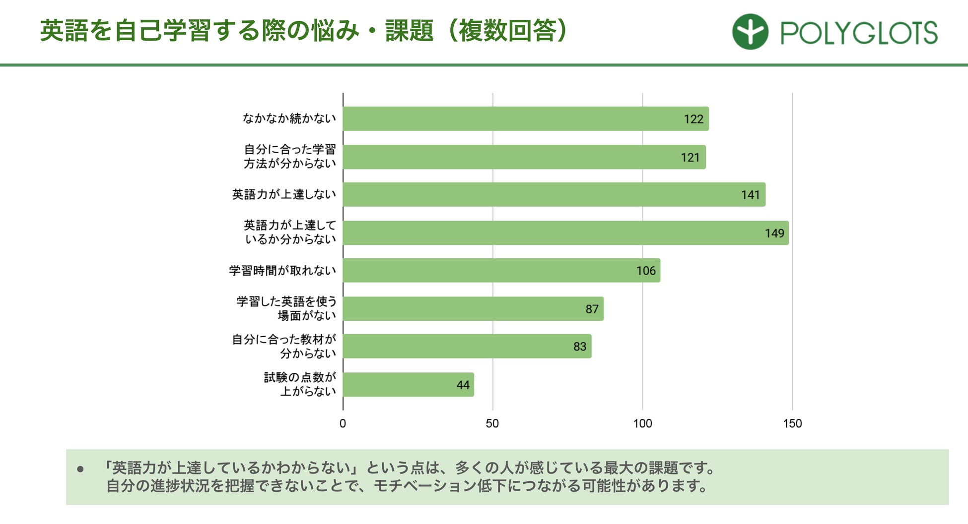 【英語学習者322人を対象にした意識調査】 日常的に英語を話す機会が少ないことが、モチベーションの低下を引き起こす最大のハードルであることが明らかに。 - 株式会社ポリグロッツ