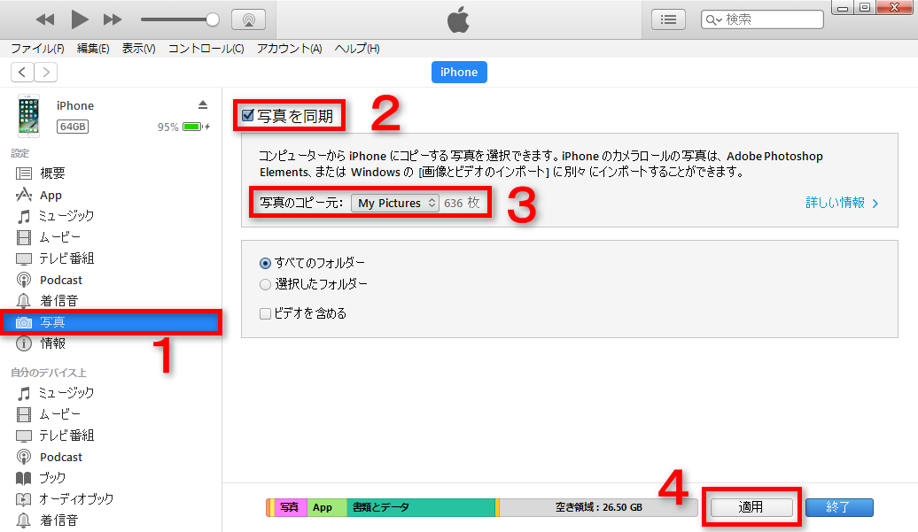 方法2 iTunes経由でSDカードの写真をiPhoneに移す