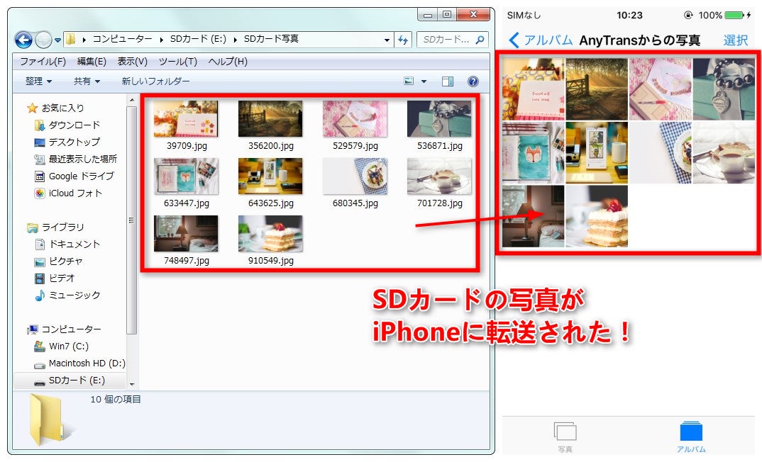 高速度:100枚の写真を4秒でSDカードからiPhoneへ移行
