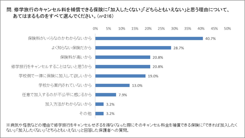 ・保護者が修学旅行のキャンセル料を補償できる保険への加入を思いとどまる理由