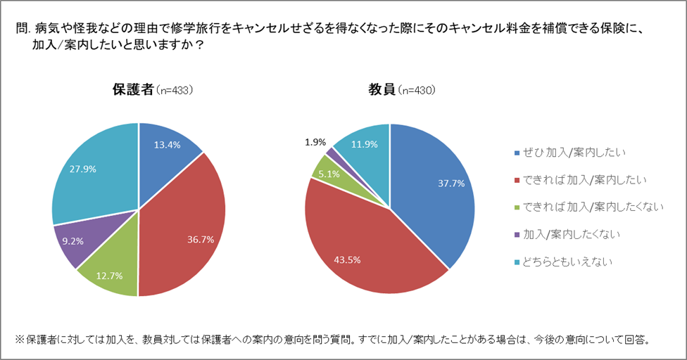 ・修学旅行のキャンセル料を補償できる保険への加入/案内意向