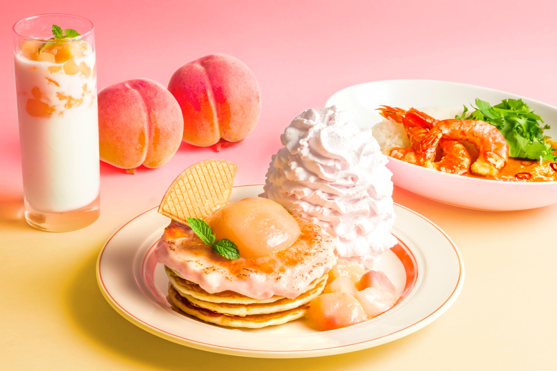 【Eggs ’n Things】桃づくしのパンケーキと夏カレー第一弾が登場!「白桃ブリュレパンケーキ」「ガーリックシュリンプココナッツカレー」7月3日(水)~7月31日(水)