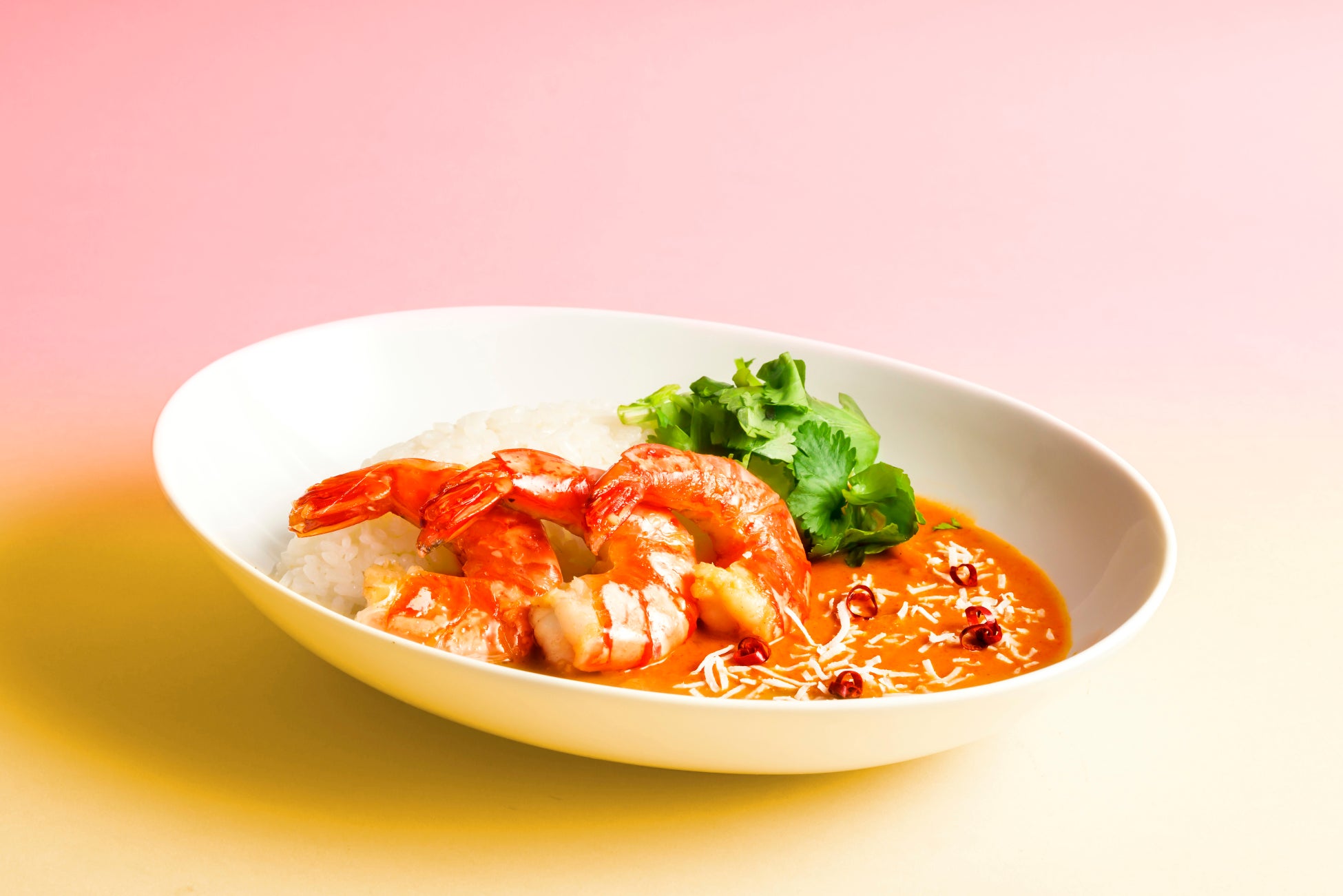 人気のガーリックシュリンプをのせた真夏に食べたくなるスパイスが効いたカレー!