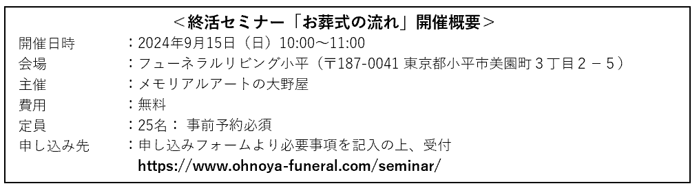 開催:2024年9月15日(日)10:00~11:00/フューネラルリビング小平