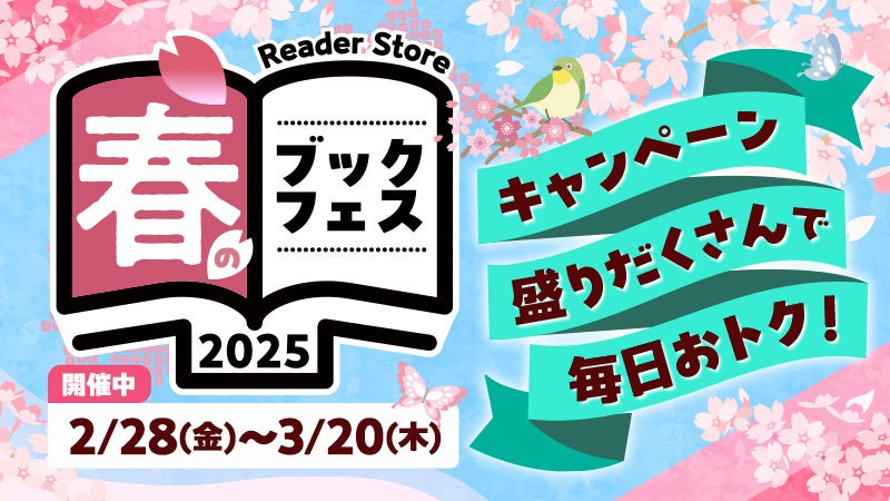Reader Storeでは、2025年2月28日~3月20日まで「春のブックフェス2025」を開催。イチオシ作品が毎日全話無料で読める大型キャンペーンをはじめ、お得なクーポン、プレゼントキャンペーンなど、注目のキャンペーンが目白押しとなっております。ぜひ「春のブックフェス2025」にお越しください!