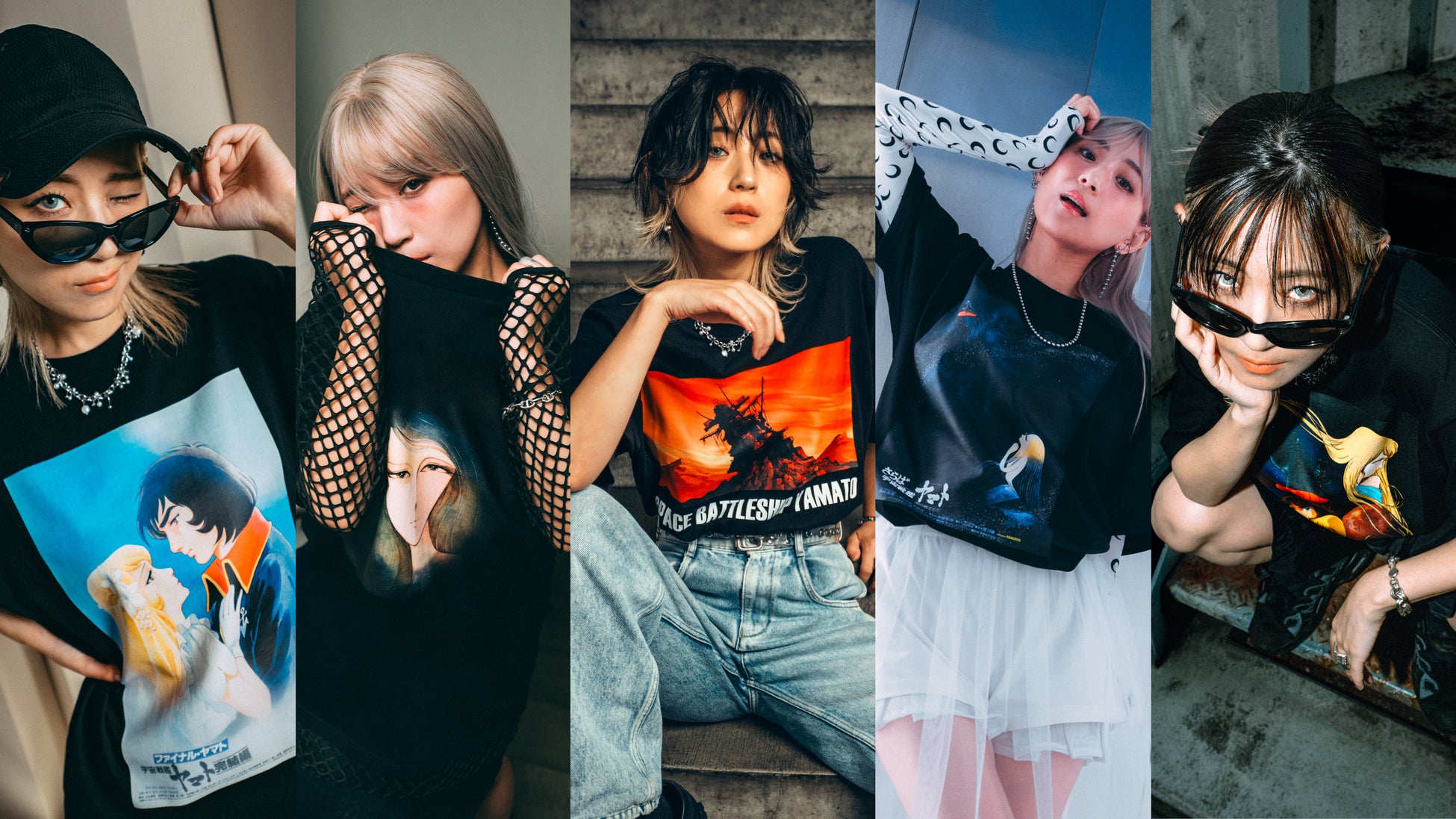 2025年7月19日(土)から開催する「宇宙戦艦ヤマト 全記録展」大阪会場にて、アパレル商品全19種を発売します。『宇宙戦艦ヤマト』の歴代劇場版ポスターや、麻宮騎亜(キクチミチタカ)氏、出渕裕氏、結城信輝氏、美樹本晴彦氏&庵野秀明氏といったクリエイター陣によるアートなどを大胆にデザインしたTシャツコレクション。モデルを務めるのはコスプレイヤー、声優、DJ、そしてアニメTシャツ愛好家の「つんこ」さんです。