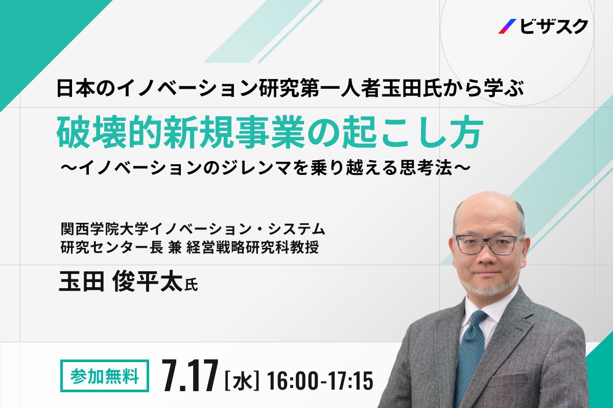 【7/17 (水) 16時】日本のイノベーション研究第一人者 玉田氏から学ぶ 破壊的新規事業の起こし方無料オンラインセミナーを開催