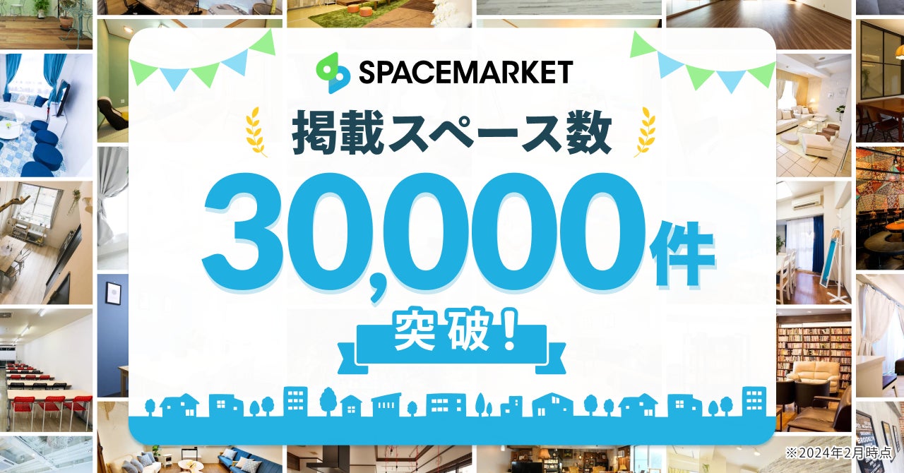 株式会社スペースマーケット(本社:東京都渋谷区、代表取締役社長:重松大輔、以下、スペースマーケット)は、あらゆるスペースを貸し借りできるプラットフォーム「スペースマーケット」の掲載スペース数が3万件を超えたことを発表いたします。