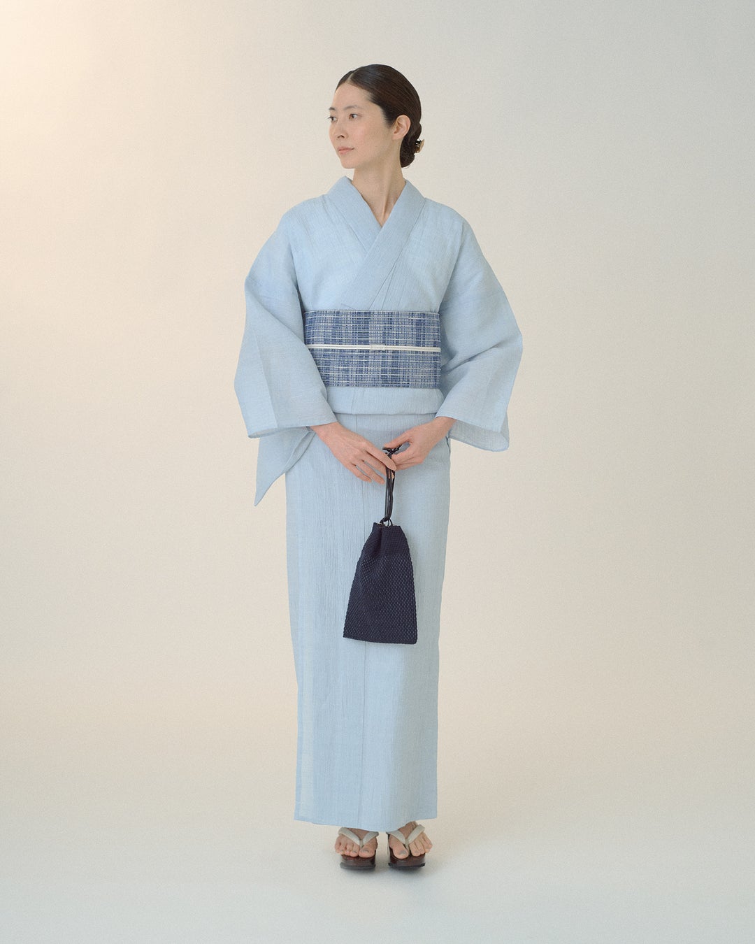 毎夏ご好評いただいている滋賀県の近江縮を中心に、カンボジアで絞りを施し有松鳴海で染め上げた麻の絞り、石川県で仕上げた染めの麻ゆかた、そして山形県で麻に和紙や絹など異なる素材を織り合わせた帯など、さんちの魅力が息づく、豊かなものづくりが叶いました。