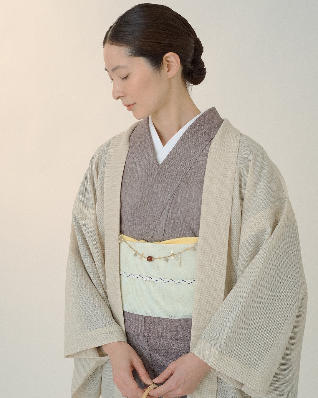 帯からのぞく帯揚げ一枚や、小ぶりでも存在感のある帯留めひとつで、装いの世界観は大きく変わります。白シャツのように、シンプルでありながら、コーディネート次第でさりげなく雰囲気が変わる。