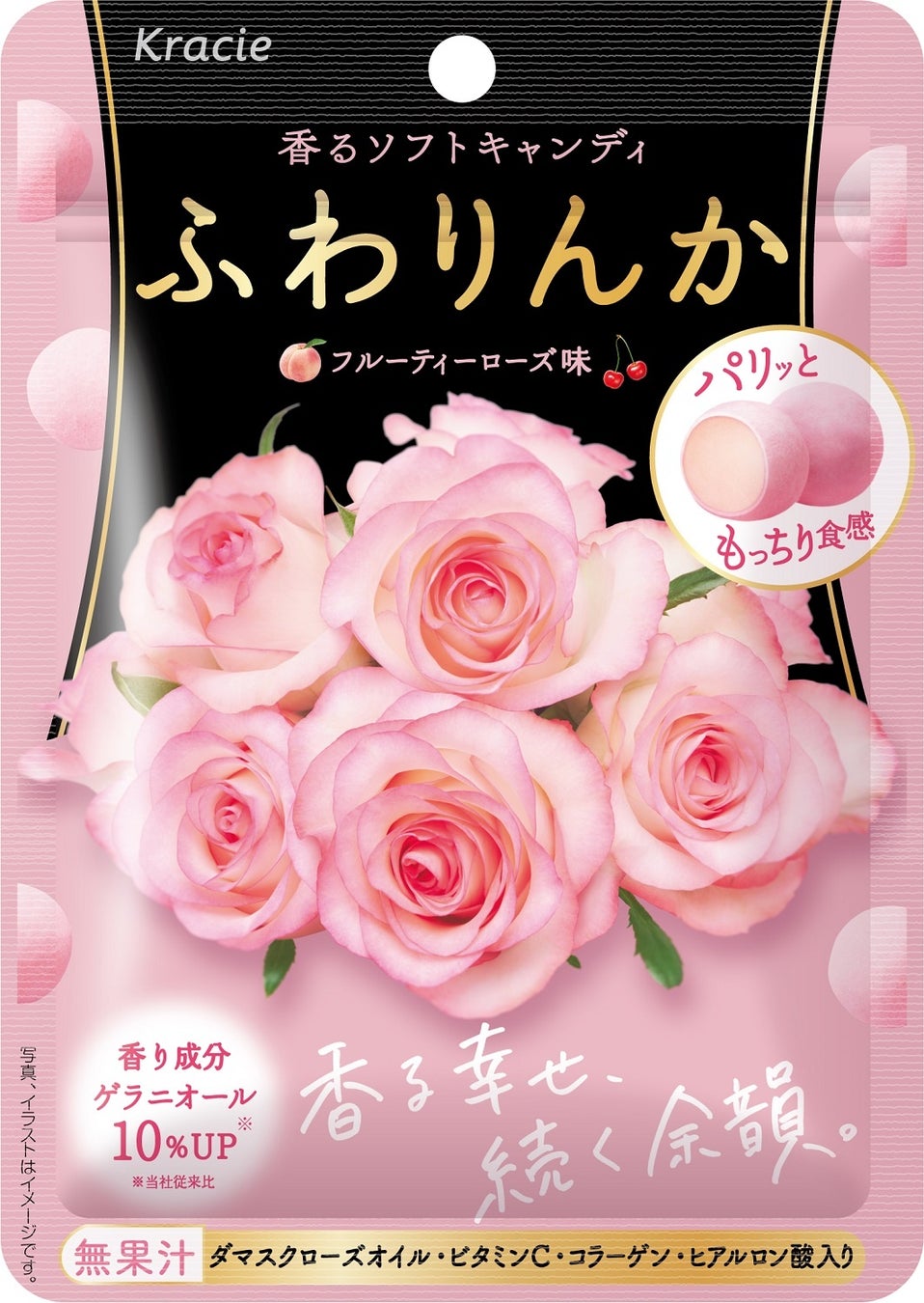 香り成分10%UP!息からカラダまでふんわり香るソフトキャンディ「ふわりんか フルーティーローズ味35g」を2月20日から新発売!