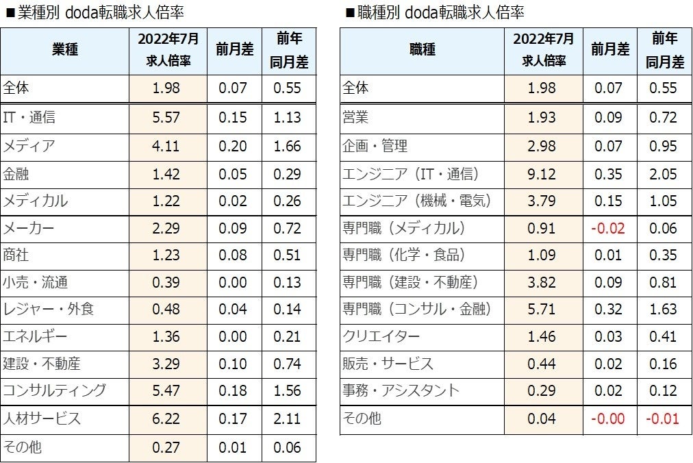 パーソルキャリア株式会社が運営する転職サービス「doda(デューダ)」(編集長:大浦 征也)は、2022年7月の転職求人倍率をまとめた「doda転職求人倍率」を発表いたします。