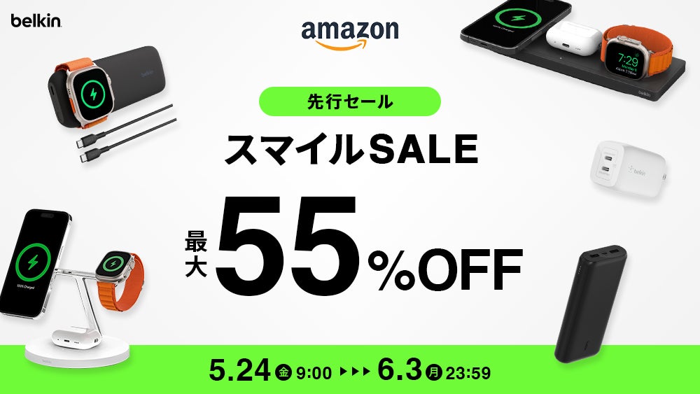 米カリフォルニア発、洗練されたデザインと快適なライフスタイル体験を提案し、グローバルで絶大な人気と市場シェアを誇るスマートフォン・PC関連製品ブランド「Belkin」の日本法人、ベルキン株式会社(以下Belkin、所在地:東京都中央区京橋)は、Amazon 5月スマイルSALEを5月24日~6月3日の日程で開催します。対象製品から一部製品を先行公開します。