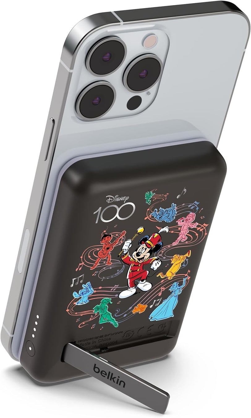 ミッキーマウスのシルエット、「トイ・ストーリー」ロッツォ、Disney 100 MUSICAL WONDER、「アナと雪の女王」が正面と背面にデザイン