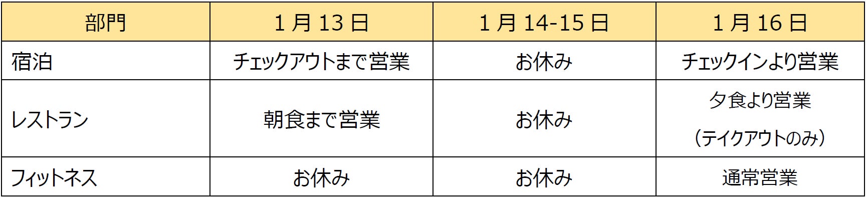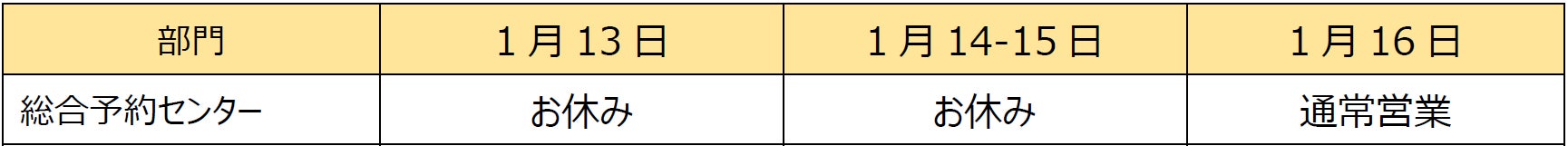 働き方改革の一環として、宿泊部門を2026年1月13日~15日の3日間、スポーツ部門を2026年1月14日で実施