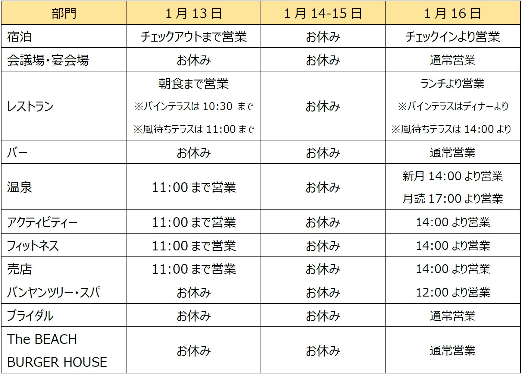 フェニックス・シーガイア・リゾート「全施設一斉休館日」のご案内