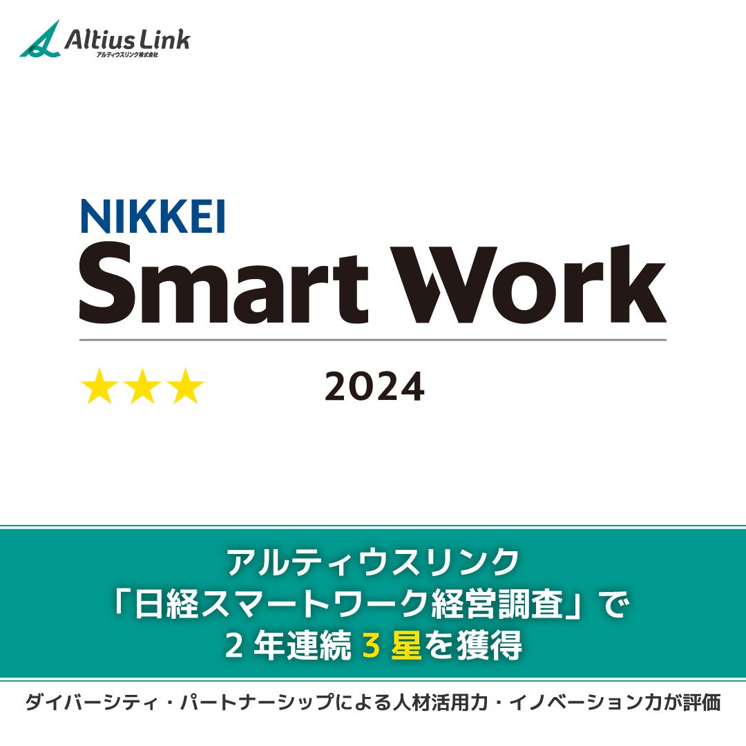 アルティウスリンク、「日経スマートワーク経営調査」で2年連続3星を獲得 ~ダイバーシティによる人材活用力・パートナーシップによるイノベーション力が評価